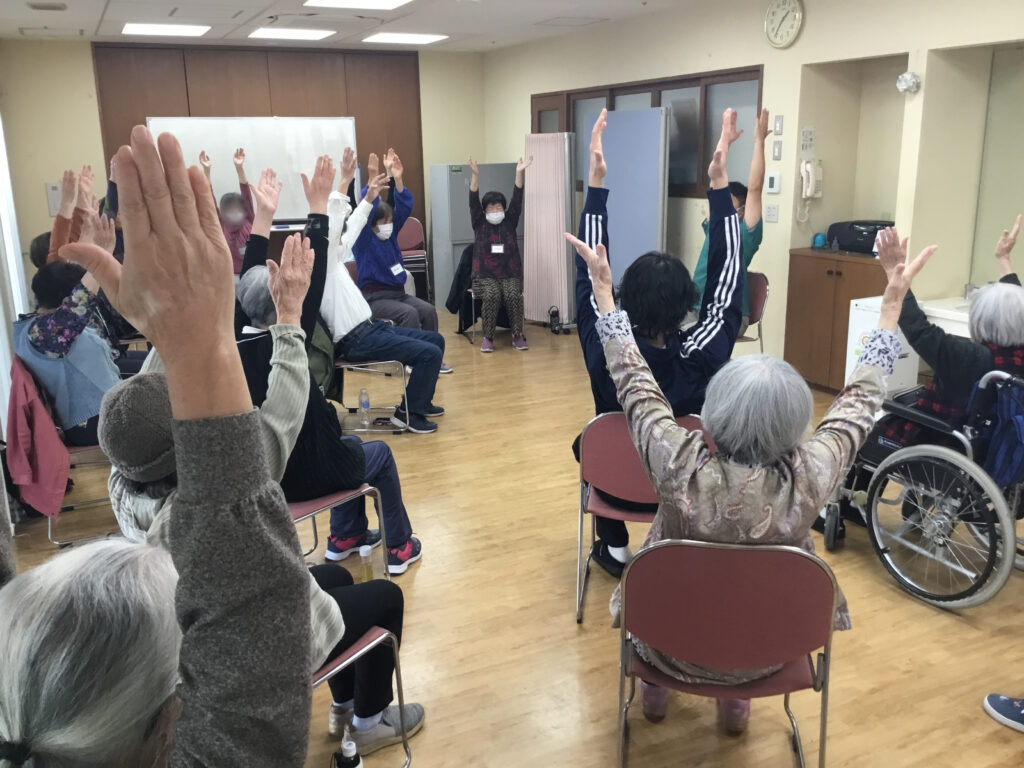 転倒予防や体力維持を目指し、「地域の高齢者の健康寿命を延ばすおてつだい」をしています。椅子に座ってできる簡単な体操や筋力トレーニングを中心としたプログラムです。